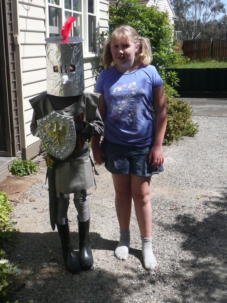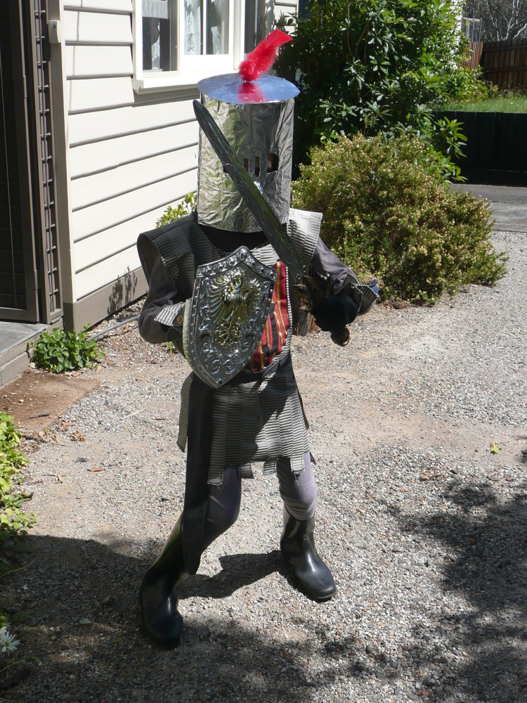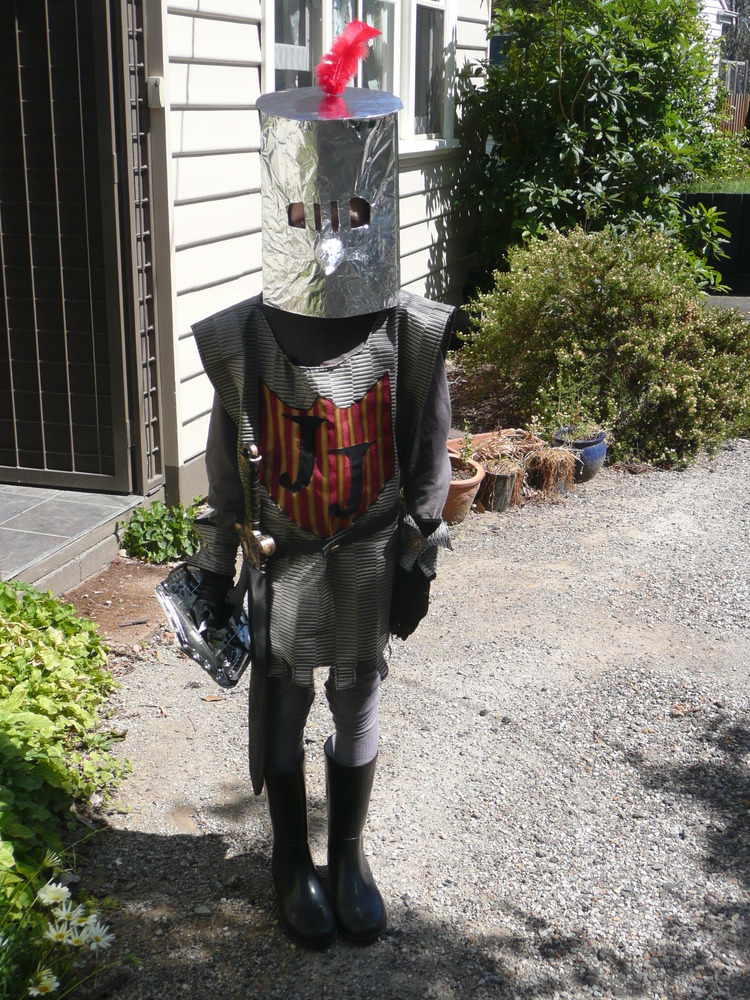 Jasper went to a friends birthday party recently and dressed up as a Knight. He design most of the costume himself although he had Karina’s help to create it. The emblem on his chest is “JJ” for Jasper James. During the photo session he directed Karina to take about 20 different photos in different poses, I’ve included a greatly restricted set of them here!