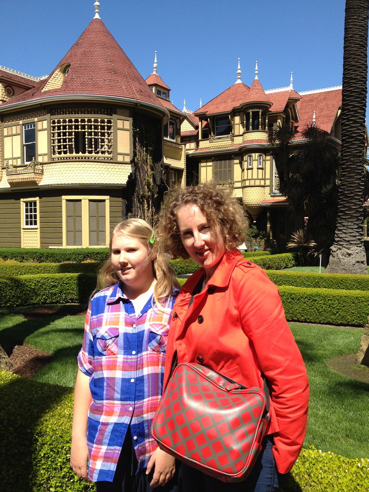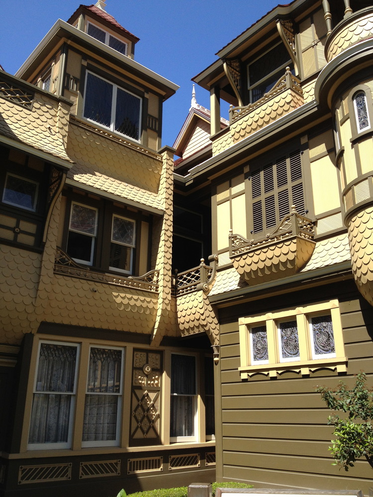 So what else did we do? We headed to the Winchester House which is in San Jose.  It was built by Sarah Winchester, the wife of the inventor of the famous “Winchester Rifle” company.  Her husband and daughter died tragically and she turned into a bit of a fruitcake who felt the spirits of those killed by the Winchester Rifle were talking to her, or chasing her or something.