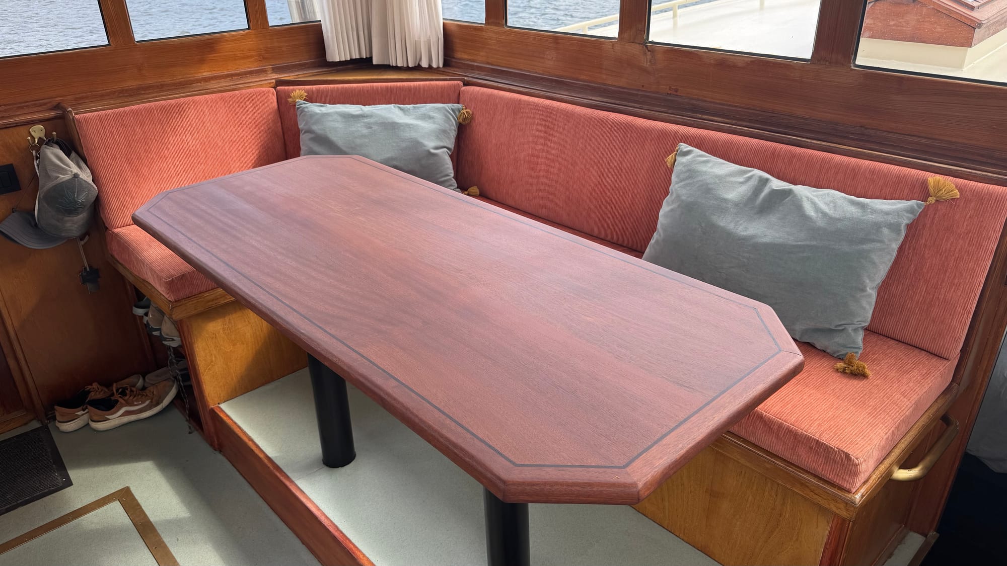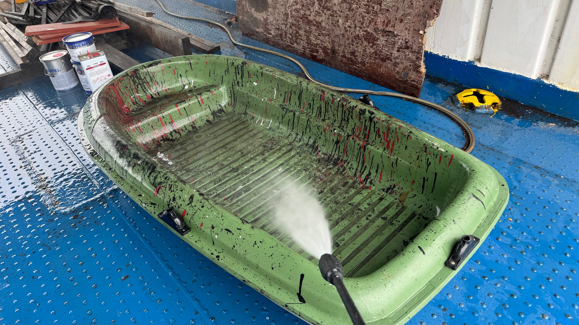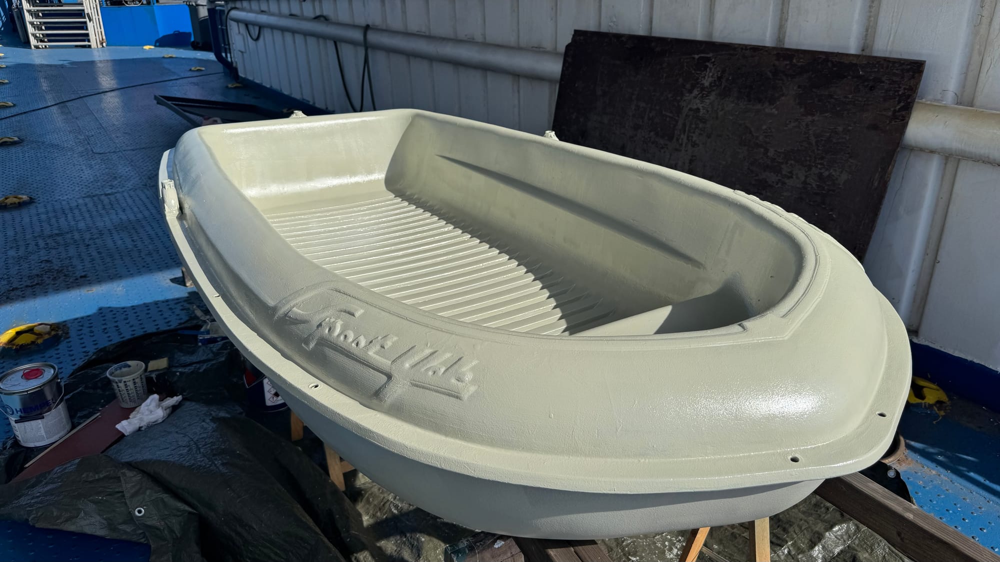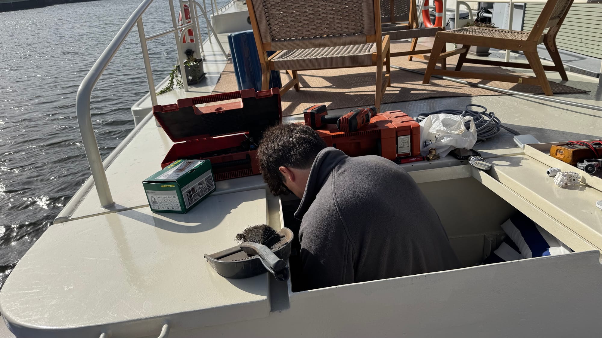 The big question! Is Delfine finished? Well, since the last post, we DO have toilet seats. The AC is repaired (faulty circuit board), and the central heating is (almost) working correctly – just in time for cold weather. We've painted the tender and, as the weather gets wetter, decided to add a grip coat to the side decks, so we've been repainting them too.