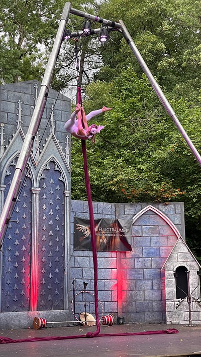 Then Friday night it was off to the Rittertournier — the knights tournament. Markus and Isa had described this to us one evening and after hearing about it, we decided we had to come and check it out! Strangely it’s not the main drawcard for Bavaria, but it’s definitely entertaining and a lot of fun. It’s basically a renaissance fair on a grand scale that’s been setup with a permanent home that makes it a kind of medieval Disneyland. There are lots of displays and demonstrations of medieval craftsmanship, stores selling leather armour, decorations and princess crowns and then entertainers both wandering around and at permanent stages. It’s a lot of fun and definitely worth a visit.