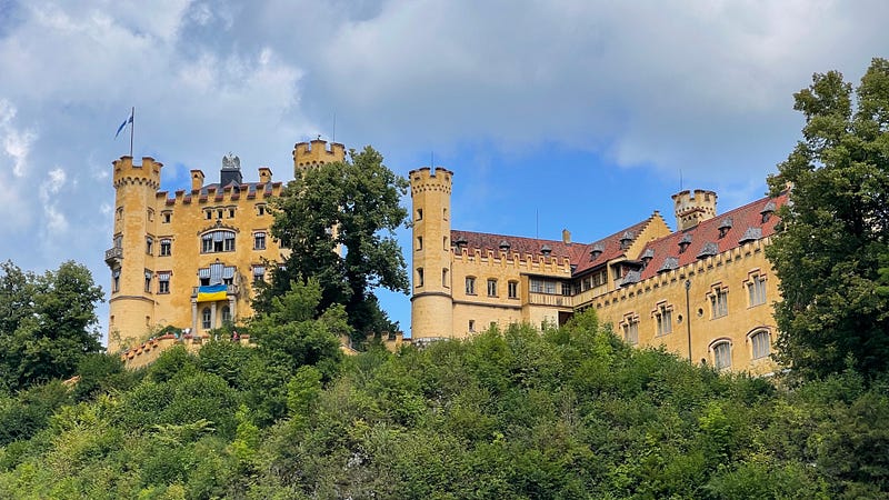 Max loves the middle ages and buys a ruined castle on which he builds Hohenschwangau Castle, a baroque castle that’s more romantic than practical (think Palace disguised as a castle rather than anything military). He marries his wife Marie who loves the mountains (and became the first women to scale several of the alps) and they increasingly spend time here. They have two children, Ludwig II and Otto.