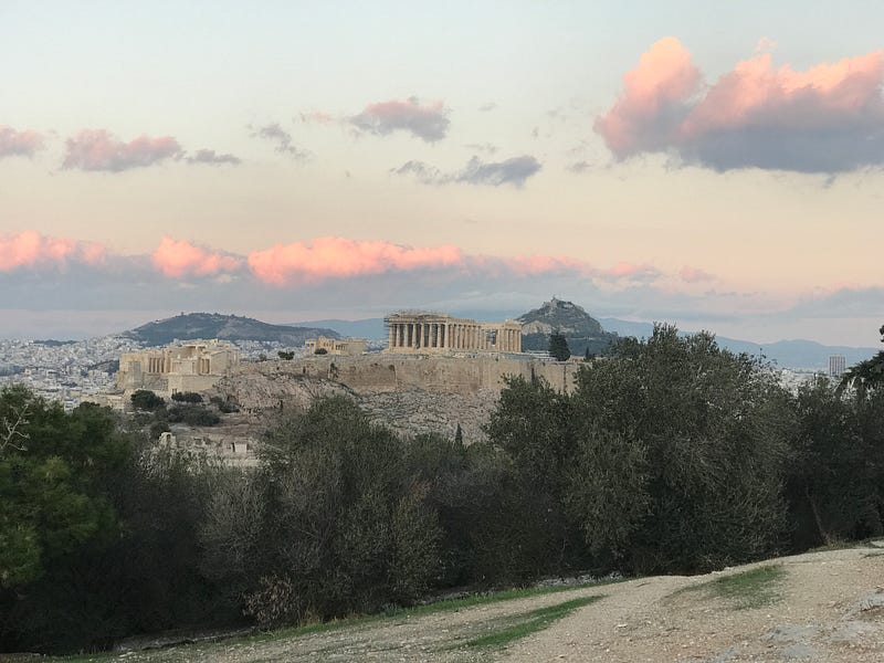 On one of our walks, we met up with Michael and wandered up to Phillopopou hill to watch the sunset finally. It was beautiful, but also getting very cold!
