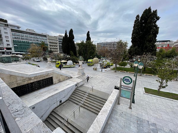Christmas traditions are always interesting around the world. I’m not sure if it’s COVID related or just “the way it is” but they are only just now putting up the Christmas decorations here, including the front of our apartment (Hugs For All), the stars on our street (thanks for doing that at 1AM in the morning… uuugggh) and just yesterday, the main decorations in Syntagma square.