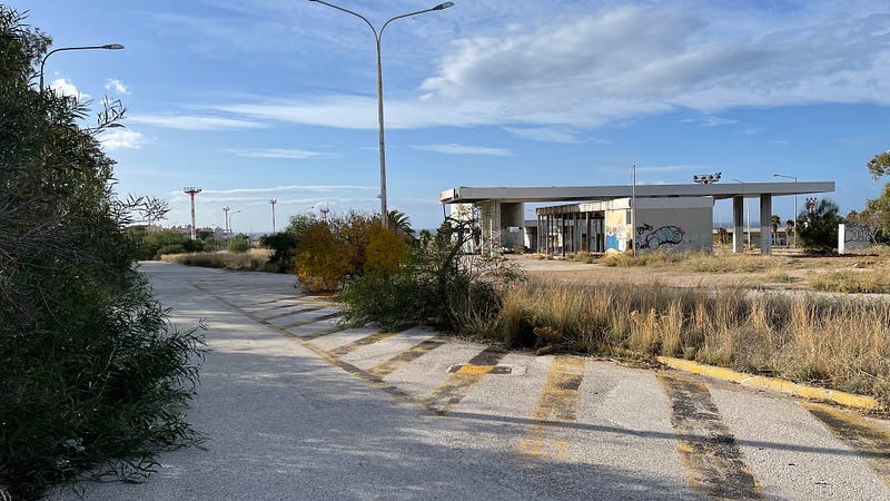 To get to the boat yard involved a lengthy walk past the old airport in Glyfada. It was closed around the Olympics here (so 2004) when the new airport was opened and has been in a state of abandonment ever since. There are big plans for a massive development here, but they’ve never quite got off the ground yet due to the financial crisis and now COVID, although apparently it’s getting serious from next year.