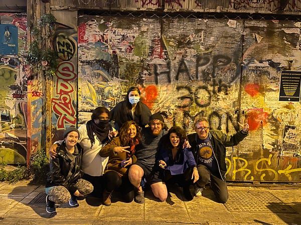 Wednesday night was Simon’s birthday and we had a small party with the same regular group of friends that was very pleasant. Exarchia where he lives is covered in graffiti and we had the idea it would be funny to write Happy Birthday on the wall opposite his house, so I headed over there late Tuesday night with a partner in crime (not Karina) to make it happen. Best birthday present ever was the verdict.