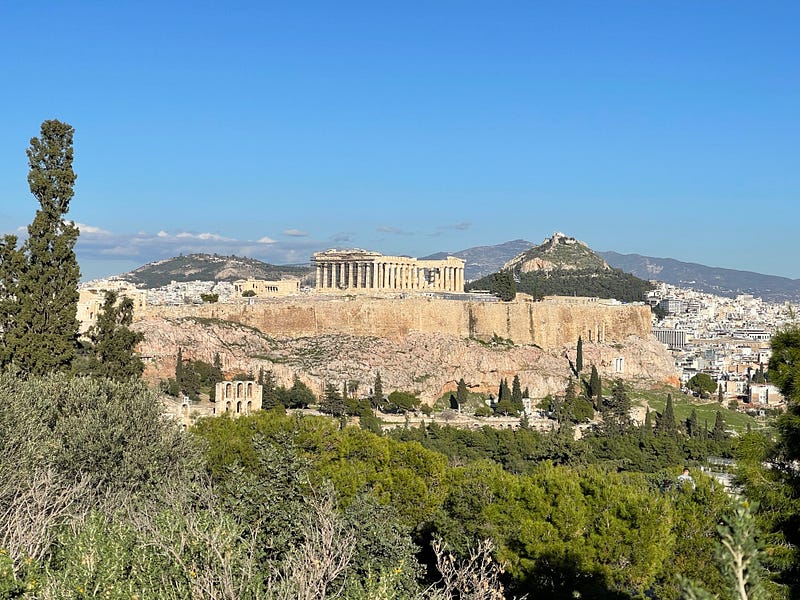 We shared breakfast together on New Years Day and went for a long walk to enjoy the stunning Greek weather — 18C and sunny!