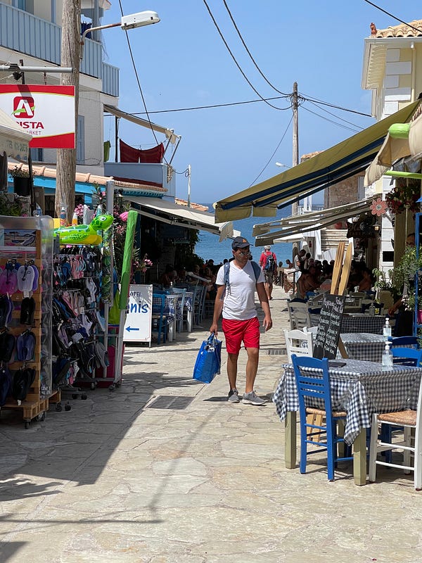 The pace of life continues to adjust as well. One thing I really love is that as the sun sets, everyone comes outside. There’s such an emphasis on community and shared spaces and people coming together in the cool of the evening to chat, play games and generally just get out of the house. Every village has a playground that is teeming with children at night. It’s also when people head to dinner, the tavernas are largely empty up until around 9pm at night.