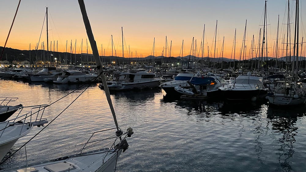 When you’re stern to, you are really tightly packed in with other boats. This is very common in the Mediterranean and is how we’ll spend a lot of nights as we travel around. A few things we noticed though, the guys on the boat next door stayed up late chatting and drinking and then of course, all the kids in the town wandering up and down the docks chatting at 2AM in the morning are right outside your window! It wasn’t our best nights sleep at all. One big win was that we’ve finally figured out the refrigerator and successfully kept everything cold at the dock without power.