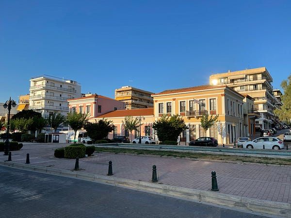 We did find a captain, Dimitris, who was able to take us from Porto Heli to Lavrion on Tuesday. Because we needed to fill up with diesel (which can’t happen in the marina— you need to fill at the town quay) and also as we needed to head out early at 7AM to make it before the weather, he suggested that he come by Monday evening to move Matilda on to the town quay and we should spend the night there. So we did…