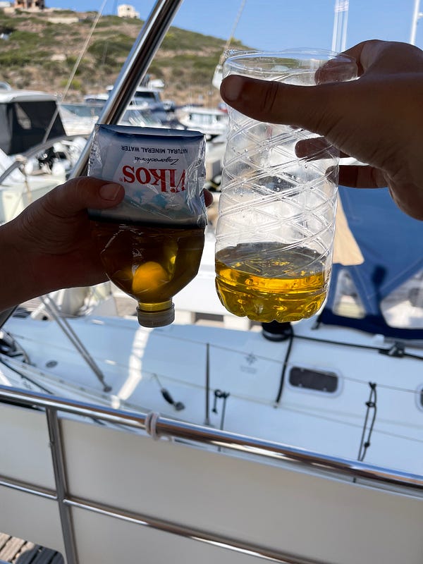 Nothing touristy really this week at all — we did get off the boat on Saturday and head into Lavrion in a taxi to escape the wind for a bit, we went to Jumbo which is kind of a dollar store crossed with the layout of an Ikea (i.e. it’s an endless one way maze of cheap crap), but we did find some useful items and enjoyed being on shore again for a bit too.