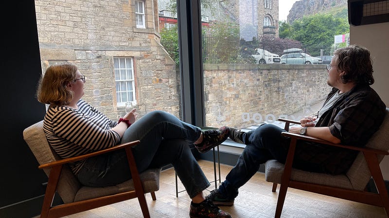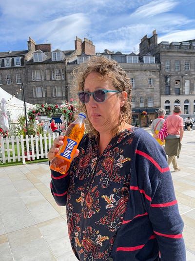 We walked extensively, saw a couple of comedy shows and ate at a series of cafes Ella has been wanting to try. We both tried Irn Bru for the first time — apparently it outsells Coca Cola in Scotland and is similar to sarsaparilla or creaming soda if you’re familiar with those.