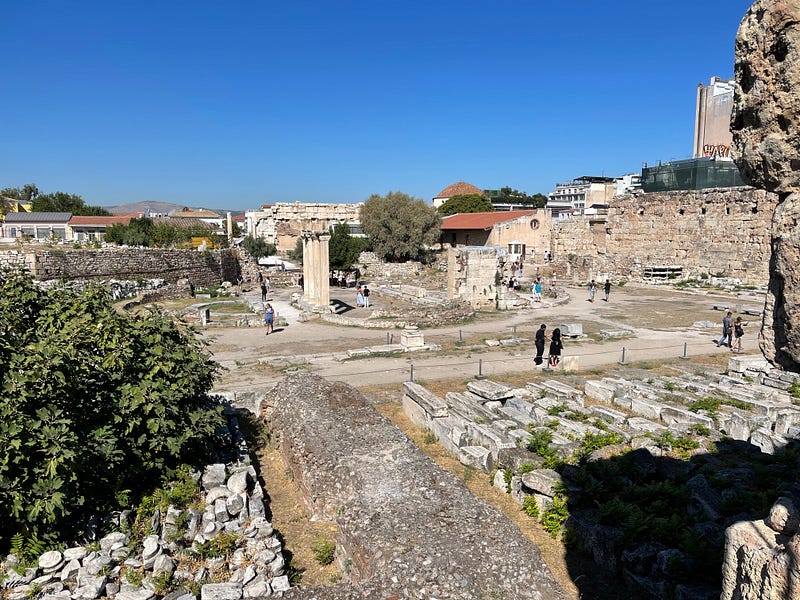 We passed Hadrian’s Library, a rather sub-standard ruin if we’re honest in the center which has previously always been empty and we couldn’t believe that there were people visiting it! It was almost full, we’re used to there being no one around. The tourists make a real difference — Plaka which I’d enjoyed as being quiet and charming, is now full of hoards of people, tourist shops and in reality, is fairly unpleasant now.