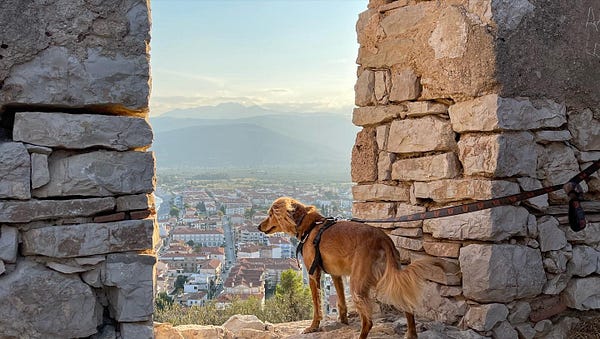 When we were walking the dog in the evening, we came across a couple of Americans arguing loudly outside a tourist shop that was closed. It seems they wanted to head to Spetses (near Porto Heli), but one of them had failed to make bookings and they’d left it too late. I offered them a ride on the boat — we were heading that way tomorrow morning anyway, and they took our number but we ended up never hearing from them. I’d read somewhere that the reality seems to be no matter how much you enjoy going on your boat, people rarely actually take advantage of it! So that’s a hint — if you’re up for a cruise we’d love to have you join us and share the experience, I’m now inviting random strangers off the street…