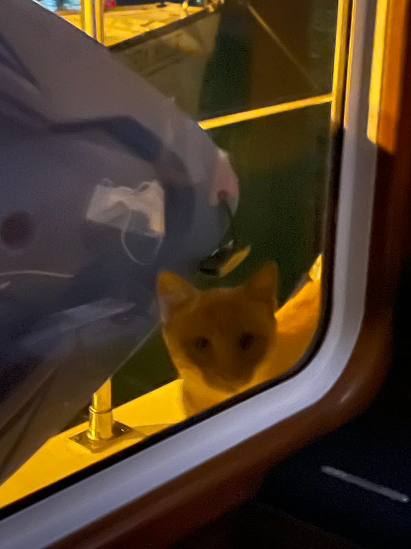 Markus and Isa joined us for drinks onboard and we had a lot of fun chatting with them. They’ve been living aboard full time for the last 18 months and Karina asked what advice they had for relative newcomers like ourselves. It was interesting. Markus pointed out the importance of social contact, go out of your way to meet new people, chat with them, share a drink — it’s easy to go stir crazy inside your own boat with just the two of you all the time. Isa’s advice was the challenge of trusting the captain, the importance of one person taking responsibility for decisions and being “in charge” when it comes to the boat underway.