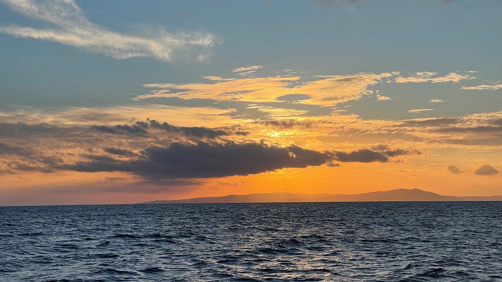 The big challenge was ahead of us — with the weather forecast we really only had one window left to cross from Kythnos to the coast of Athens, otherwise we’d be stuck out in the Cyclades for another 5 or 6 days. To make the window we’d have to leave after dark and cruise into the night.