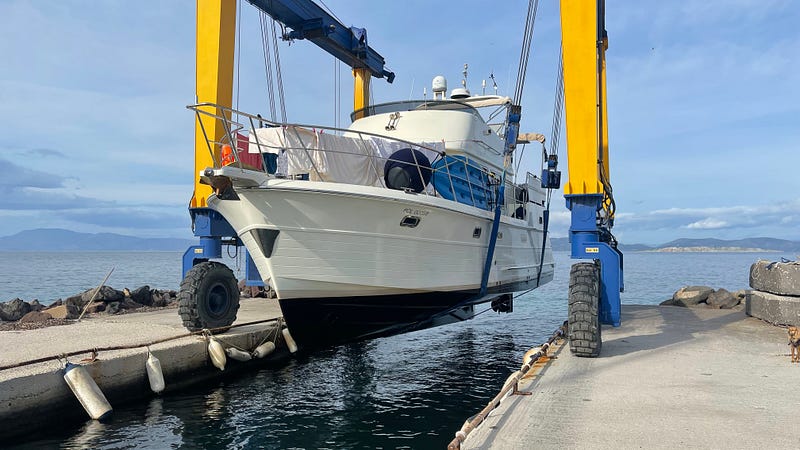 Given it was midday when we arrived, we had some time to make a move, but options that offered great protection were limited and we had no desire to head back to Poros where we’d just come from. Even though it was safe there, it had been rough. Markus said they’d just been hauled out (at the same yard we were going to) and there appeared to be nothing scheduled, why not ring them and see if they would haul us out today too?