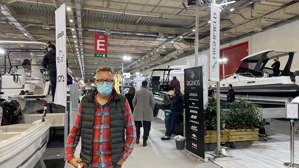 On the boat side, the Athens show is focussed on local manufacturers, which mainly produce RIBs (Rigid Inflatable Boats), some of which are HUGE (even bigger than Matilda), but also definitely not the sort of thing we’d ever own, although they are fun to tour. Dusseldorf will have a lot more boats and manufacturers that we’re interested in. We even bumped into Argolis Kottaras, our electrical engineer from Ermioni who did a lot of work for us on Matilda this year in Ermioni, Porto Cheli and Poros.