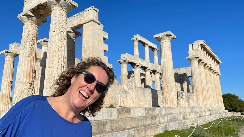 On Wednesday we headed to Aegina. I think this is one of the wonderful things about Greece, you have the modern city life in Athens (with iconic ruins), mountains and quaint villages a couple of hours away and then island life another hour or so away. It’s easy to access it all and enjoy. Ella and Inge were keen to get a bit of a flavour of everything and we were happy to show them. Of course, a visit to Aegina wouldn’t be complete without stopping in at the boat yard to visit Matilda.