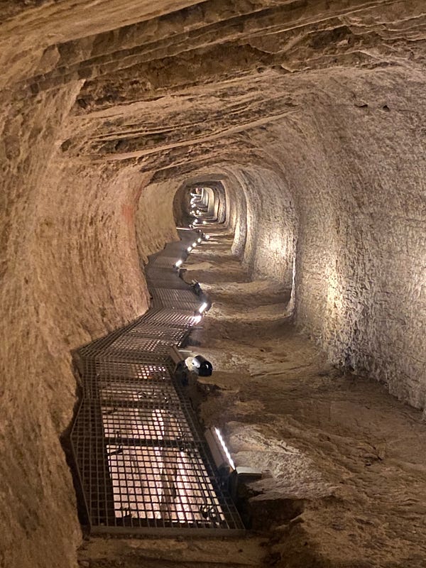 Another place we’ve been wanting to visit is the Tunnel of Eupalinos. This was built around 600BCE and it was a feat of both amazing mathematics and engineering. They dug this tunnel from both ends at the same time, 1km through limestone rock and managed to meet up almost exactly in the middle, even with detours where the rock was hard — try do that without a calculator! It was built to carry water from one side of the hill into the city for a permanent supply in case of siege. Part of the story which fascinated me is that it was “lost” until the 19C, when it was re-discovered by archaeologists searching based on historical accounts from people who had visited when it was still active! Perhaps in a 1000 years from now someone will read this and rediscover it again (hint, it’s 1km to the west of the monastery if that’s still there).