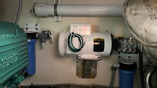 Matilda is progressing. The water maker installation is now complete and tested. The major thing we have left to go is the air conditioner. Unfortunately it’s still in transit and hasn’t arrived yet — perhaps next week. The cold weather has also delayed the last couple of jobs on the outside as well — it’s been too cold to do the bottom paint or reseal the windows. With luck it will all happen this coming week, but realistically I think we are resigned to it taking another two weeks yet.