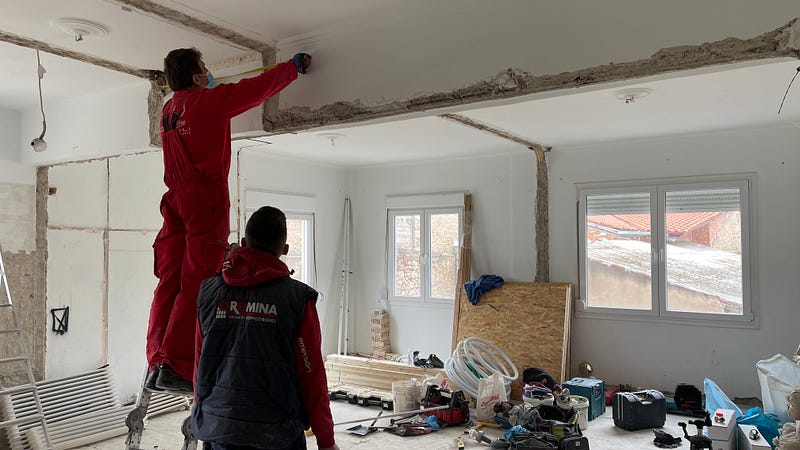 The delays on the apartment in Athens have finally been cleared — they couldn’t move the rubble out because of water works outside preventing them getting a truck close enough to carry it away. That’s finally happened now and when I was back in Athens on Thursday it was nice to pop by the apartment and see the electricians starting on running cables.