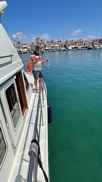 In, out, shake it all about… back out of the water. Cruising the Mediterranean on our boat Matilda.