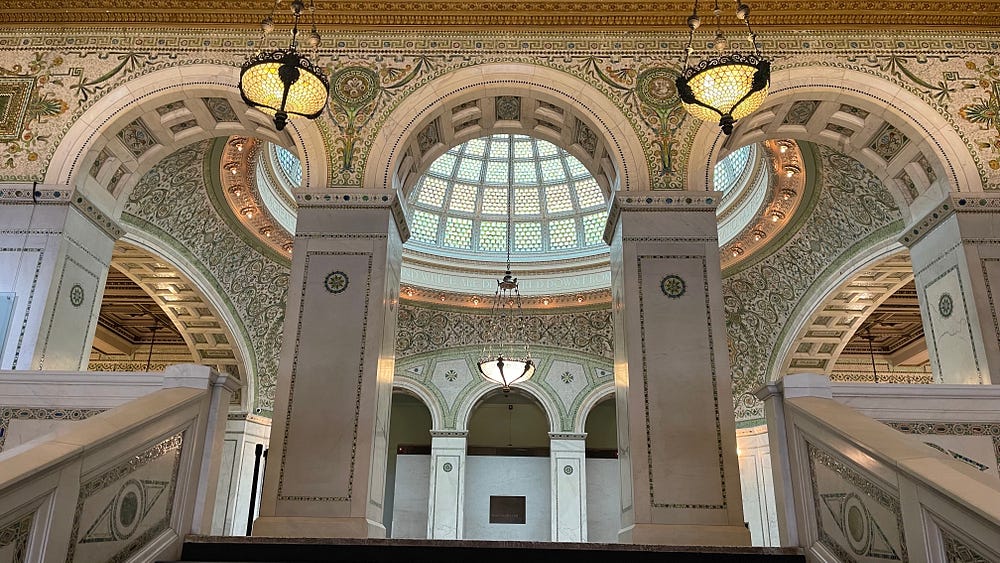 A highlight was “The Rookery”. It’s the first true modern “sky scraper”, although only eleven stories tall and also had a foyer remodelled by Frank Lloyd-Wright. There’s a wonderful tour you can take (tickets in the gift shop) which explains a lot of the thinking that went into the design. What’s fascinating about it is that even 100+ years ago, designing for the “User Experience” was definitely a thing, a concept and sensibility I think of as being a much more recent trend. Perhaps like many things, the focus on UX is really a re-discovery.