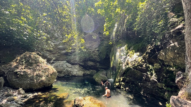 On Thursday we hired a car and drove to visit some waterfalls and a remote beach. The island is full of deserted and abandoned villages — it used to have a population of around 15,000 but now it’s less than 2,500 year round according to a local. They rely heavily on the tourist season of 2–3 months to generate their income, a fact that was reflected in the car hire price. I mentioned to the rental man that I paid only 40 Euros for the same car in Porto Heli just 3 days before, so 65 seemed a bit steep. To which he responded, “they rent year round, I have to make all my money in these 3 months”. Fair enough.