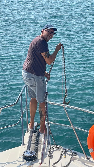Beyond that, we’re looking forward to a larger base with a marina (most likely Lefkada) in a few weeks. As you can see we’ve been putting in a few miles and there’s several jobs to take care of now building up — the water outlet from the port engine leaks, the new Air Conditioner isn’t draining well enough, the starboard battery is showing low voltages again (something that happened at the end of last season, hasn’t for a bit but started occurring again a few days ago), the macerator pump in our toilet seems to be failing and probably needs replacing. None of this is critical or urgent, but it’s all things that we need to take care of soon. Boat work never ends!