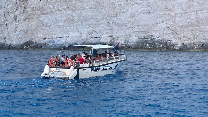 Because the seas are relatively safe with a vast number of safe coves and “hidden” beaches, the boat rental market in Zakynthos is huge. Everywhere we went there was swarms of small speed boats racing around driven by drunk tourists. In the evenings, they have “Party Boats” — large ships that cruise the island, coming in and out of the bays and changing the vibe from peaceful contemplation of the sunset to instant “doof doof” nightclub. Or on one occasion, the sound of a couple of hundred drunken Brits screaming out (singing?) “God save the queen”. To be fair, it’s not just Brits that are here, both Islands have their share of visitors from Italy, Sweden, Germany, France — all across Europe.