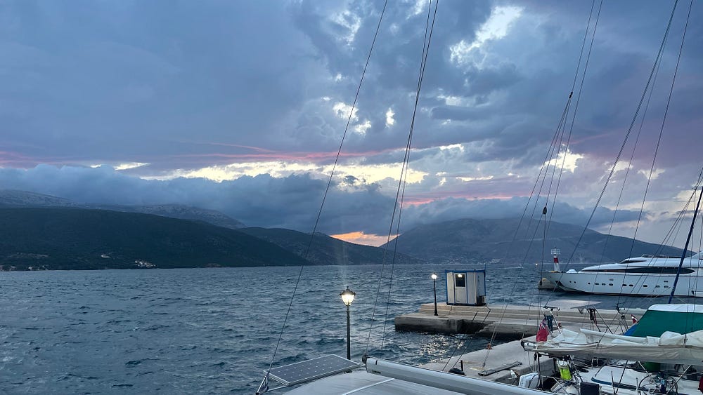 This week has turned out largely as predicted. We’ve taken it fairly easy, cruising slowly around Kefalonia and hiding out from the weather. It’s also a good chance to catch up on some people maintenance too!