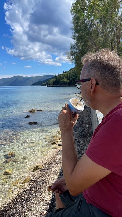 My prescription sunglasses delaminated/were damaged and not possible to see through anymore, so I needed to get new lenses. This then involved going to the ophthalmologist for an eye test to get a prescription as I couldn’t find my old one. They gave me a good checking over, including dilating my pupils which was rather brutal walking back outside in 38C weather, glaring white marble and eyes that wouldn’t close anymore and no sunglasses. I basically spent the next four hours walking around with my eyes closed. The new lenses arrived yesterday, so tomorrow (Monday) we’ll rent a car and drive over to Argostolion to collect them.