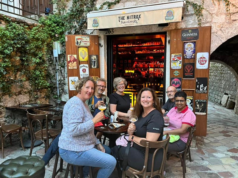 Aside from the fact we obviously wanted to visit Kotor anyway, the other reason for the visit was our final social event of the week. I’m a member of a “nomad” travel group (basically retired people who spend their time living and travelling overseas) and several of us were all in the area so a meetup was arranged. It’s a different vibe from the sailing community, but also an enjoyable one too as we all have travel in common and enjoy learning from others about what to see and where to go.
