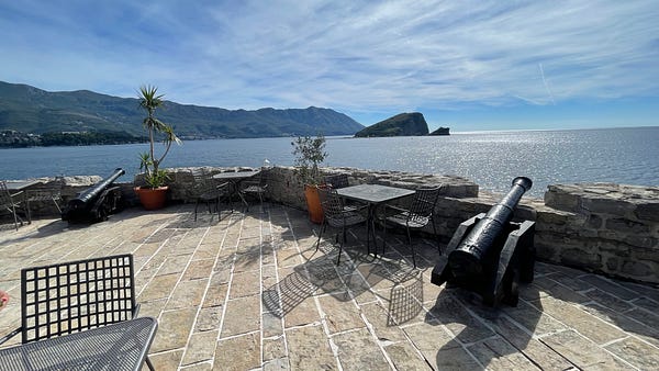 Next stop, Budva, about a three hour cruise along the coast. Montenegro is stunning with beautiful clear waters, dramatic cliffs on the coast line and cute towns lining the bays. There’s also a lot of modern resort development too on that part of the coast.