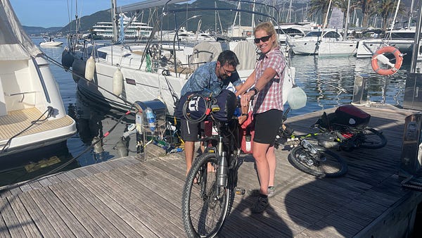 This was the case with Karl and Bronwyn — it helped that Bronwyn was a New Zealander (“Are you Aussies?”) and before you know it we were standing there chatting away and handing over our boat card. They had cycled from the UK to Bulgaria earlier in Summer and were now heading back home again, all by bike. Their next stop was Budva, same as us, so we agreed to try catch up for a drink there.