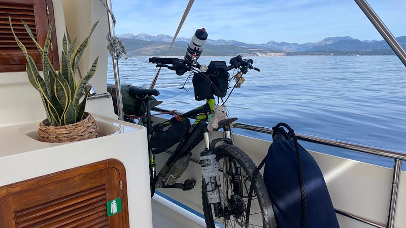 Storing the bikes was an interesting exercise, we definitely didn’t want to drop them rolling them across the passerelle. There is plenty of room on the decks, but it does limit the access to the sides, so for a couple of days to get to the bow we had to head down and through the cabin which worked OK.