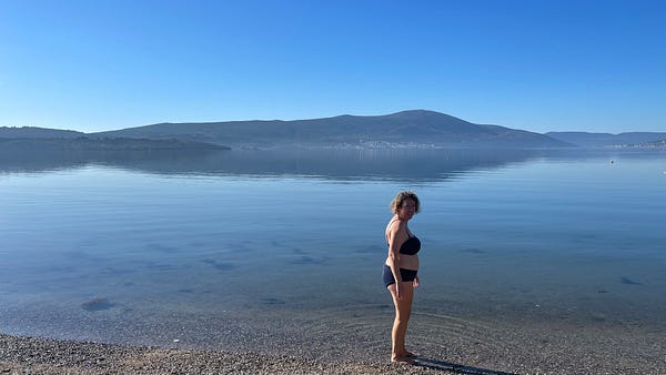 Which is how you find us with a bunch of other expats here at the shores of the Bay of Kotor going for a dip into 15C water on New Years Day. As of the 1st of January we’ve now officially completed our first swim for the year. Yes, it was cold. Karina threw herself into the experience and was the first in and the last out.
