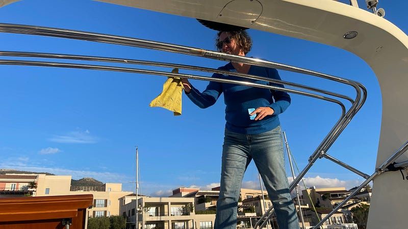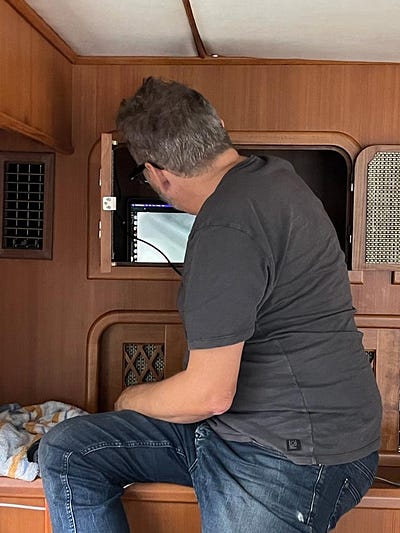 The leaky roof continued and did even more damage to some of the interior wood, so I borrowed an endoscope from Eric and tried to trace the leak that way. I think I made progress! While it seems like the leak is definitely dripping of the cables passing through the arch into the boat, it seems like the water is running from the other direction. When I pulled out all the lifejackets up stairs to get to the cable, they were covered with mould which is a good indicator it’s very wet there (and it shouldn’t be). Having used even more silicon on all the likely culprits, I’m hopeful now that it’s fixed, but of course we have to wait until it rains again to test it!