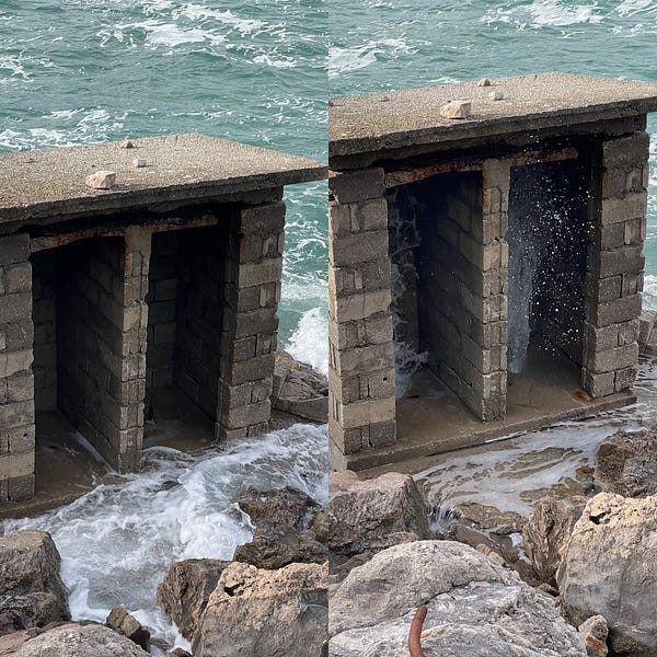 We made it all the way to the end where we walked through the submarine pens (that we previously visited by boat). With the rough weather we’ve been having it was fairly cold and damp, with waves crashing over the edge of the quay so we didn’t stay too long.