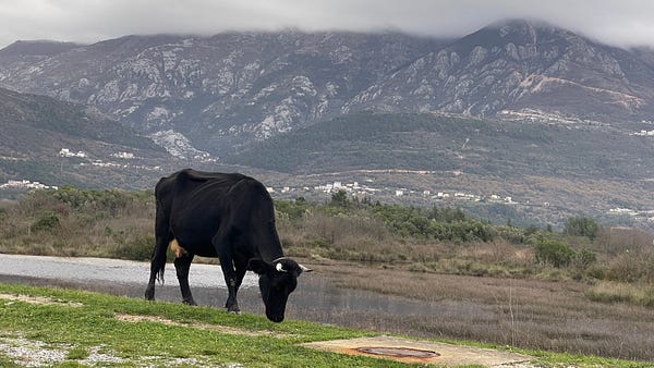 Then it was back via the coast to Matilda. The coastal route was a pleasant surprise — inside the Bay of Kotor at Tivat it’s often cold and damp with the sun falling behind the mountains surrounding the bay early. On the sea side however, the sun bathes the mountains and there are olive groves and lots more agriculture than on the inside of the bay. The old walls surrounding the groves made for a stunning drive.