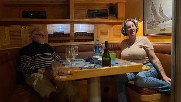We had dinner with Claire, Tim and Lucy aboard Matilda which was a fun gathering, hanging out with some of the “young ‘uns” for a while. Tim and Lucy are 24 and 22 and have been living aboard for a few months now.