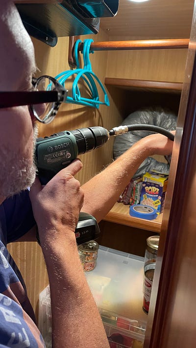As part of that wet weather process we sorted through our cabin and repacked our cupboards again, getting rid of old clothes that we no longer wear. Karina also went through the pantry and rediscovered a lot of food at the bottom of drawers and re-packed and re-sorted everything in there.