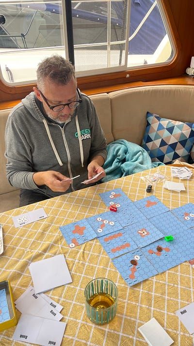Besides completing the varnishing and main stainless polishing tasks on Friday, we also took a last run in Rada out to the marine store. I had two of the liveaboard kids from one of the boats on our dock come by to trial the board game I’ve been developing. This was the second play test and I’ve learnt a lot, mostly that there’s more I need to change! Everyone agreed it was fun, but that it’s hard to finish at the moment. Ideally it should take around an hour, but with the current rule set it was closer to about two.