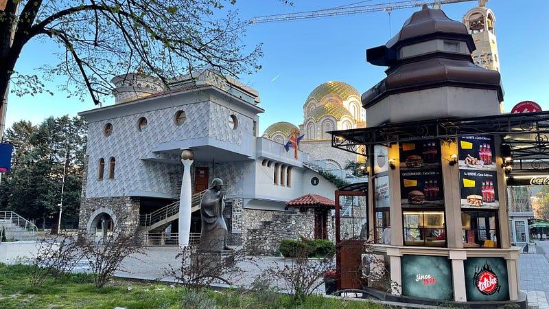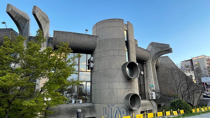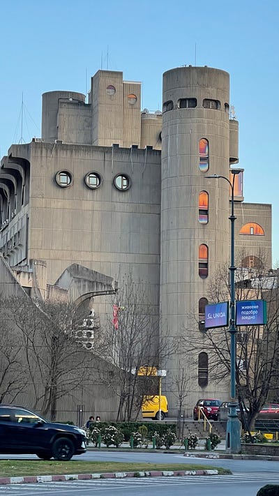 So we were delighted to stumble upon the Skopje Post Office which is a famous brutalist building. Built by the Macedonian Architect Janko Konstantinov he wanted an iconic building to replace the Post Office destroyed in the 1963 earthquake. When we were in Chicago on the city architecture tour, they spoke a lot about how good architects and their buildings respond to the environment around them. The post office is an amazing example of this, its tower structures reflecting the towers and walls of the fortress opposite — mimicking and yet defining its own space too.
