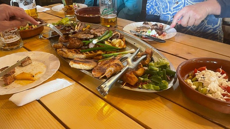 On Tuesday lunch, we headed up with Eric and Vandy, Peter, Craig and Pandy to a local restaurant hidden back in the hills above Tivat which was amazing! The food was some of the best grilled meat we’ve experienced here in Montenegro and the price was exceptional too. It filled the meat fix for the week for sure.