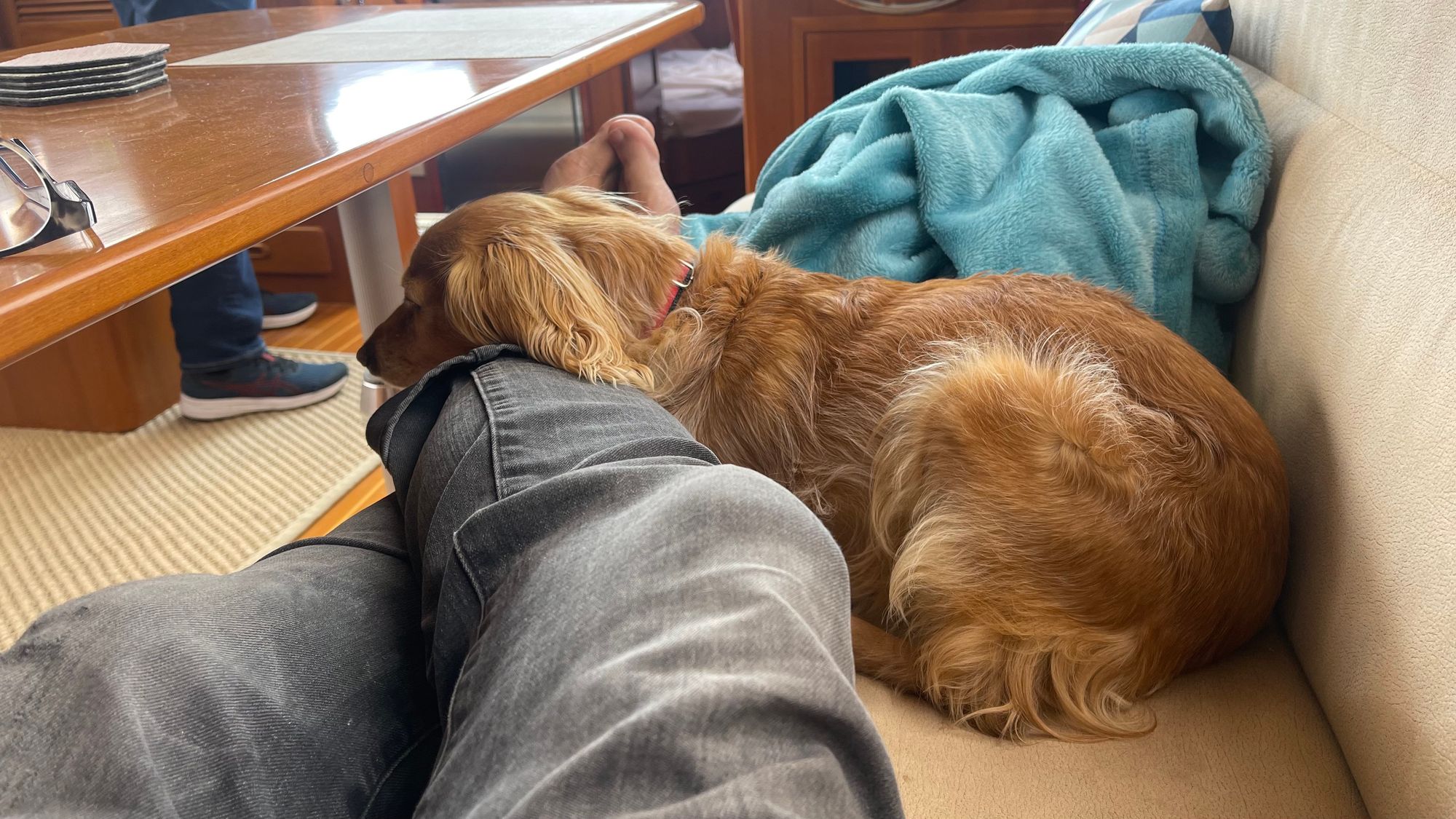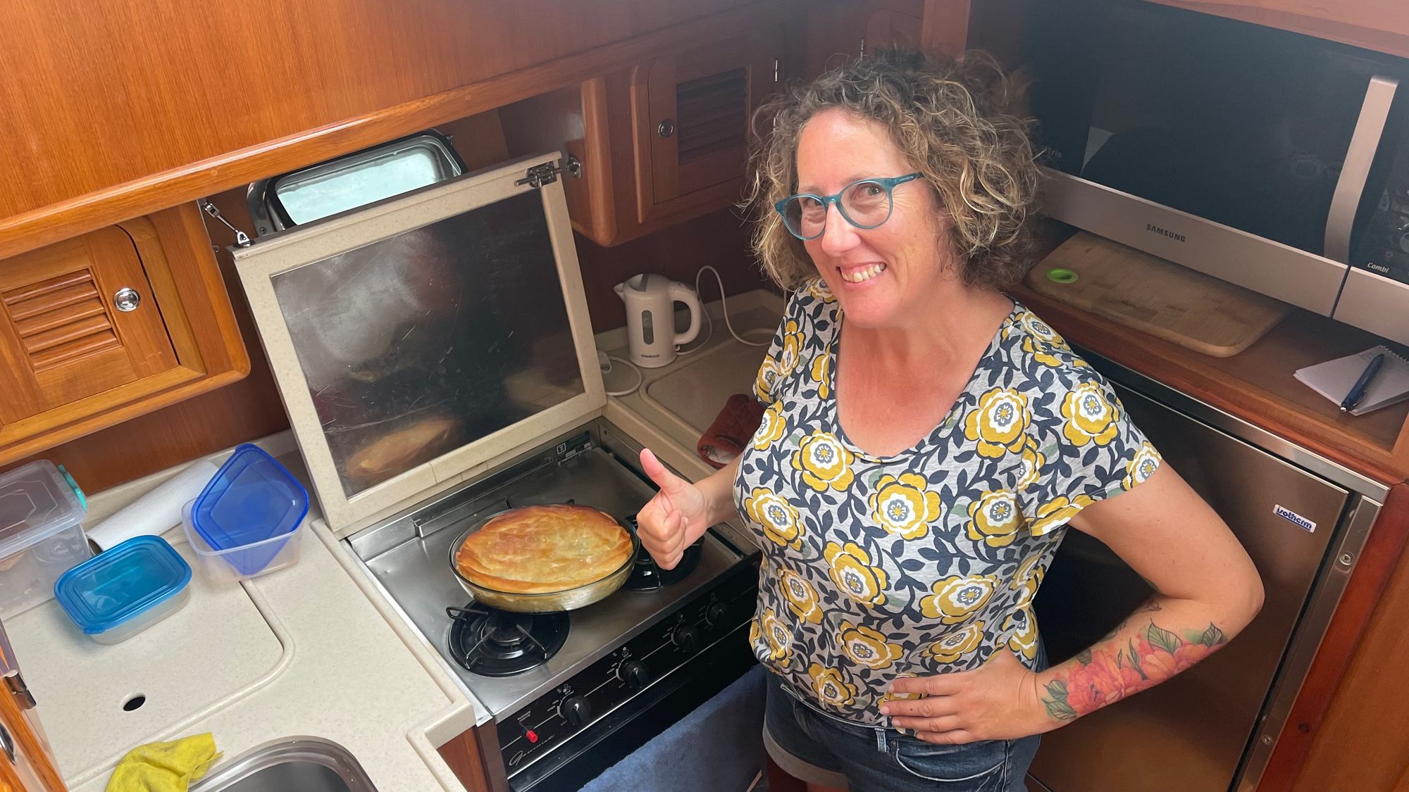 We headed off to shore to get Rosie off the boat for the first time in days but invited them to join us on Matilda the next morning for brunch, Karina's special - pancakes with bacon.