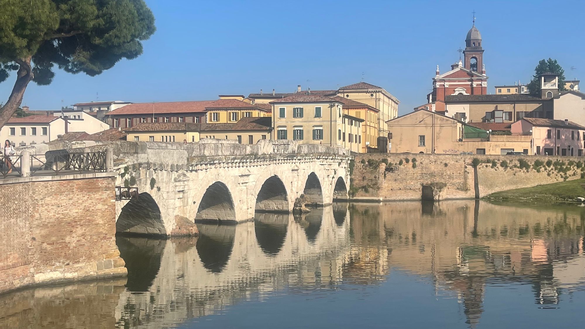 It helped make the decision to wait an extra day in Rimini. The longer we waited, the more time the water would have to clear up and the logs to go. Rimini is a lovely enough medieval town, with some interesting sites. Perhaps the most interesting is the Tiberian bridge, which was built in Roman times and still exists today.