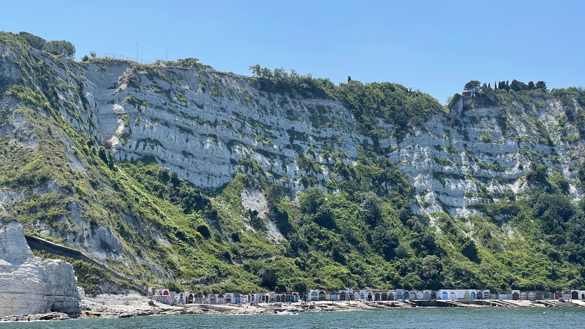 As we left Venice, the coastline was very flat, but now we have long stretches of beaches with rolling green hills behind them. Occasionally even a small cliff as the geography slowly changes.