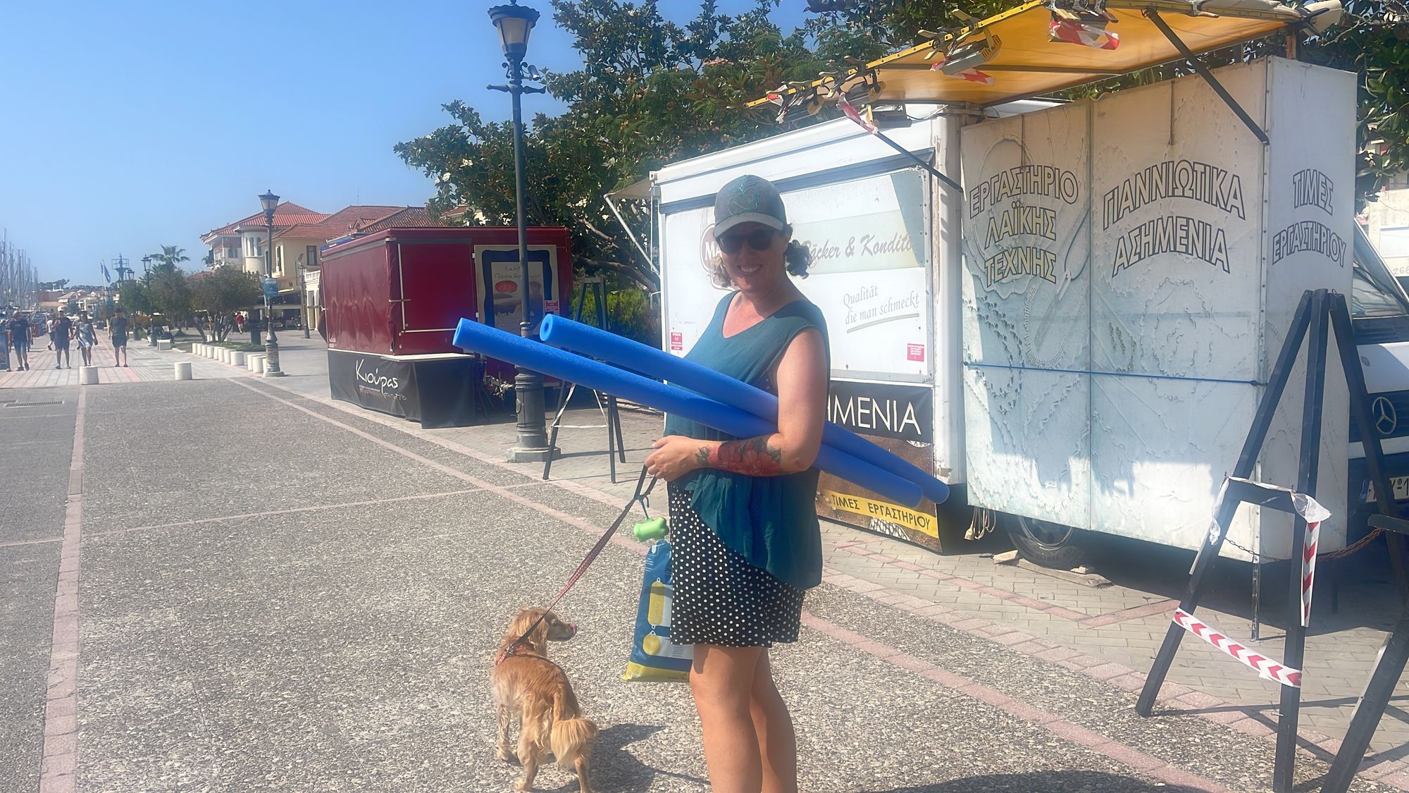 On Friday morning Chris and Christine cooked breakfast for us aboard Stray Kitty, which was a real pleasure. It's lovely getting to spend time on other people's boats and catamarans really are great for socialising on. We had a wonderful morning hanging out, chatting, sharing our knowledge of anchorages in the Saronic Gulf and going for a swim. Then it was back to wait for the bimini to be delivered (which it was, fully repaired again... for now), and for Rosie to get a few shots.