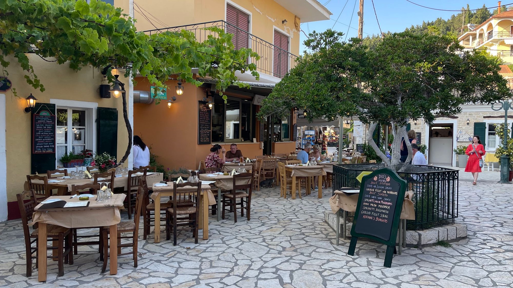 We then headed off to Kerkyra (Corfu City), where I met an agent to collect a new Starlink satellite receiver for Peter and Sarah while Karina wandered off to Marks & Spencers for those essentials you can't get in Greek supermarkets (liquorice all-sorts mostly). We thought about staying there for the night, but it was still early and we felt like cruising some more so we headed down to Petriti at the south end of Corfu.